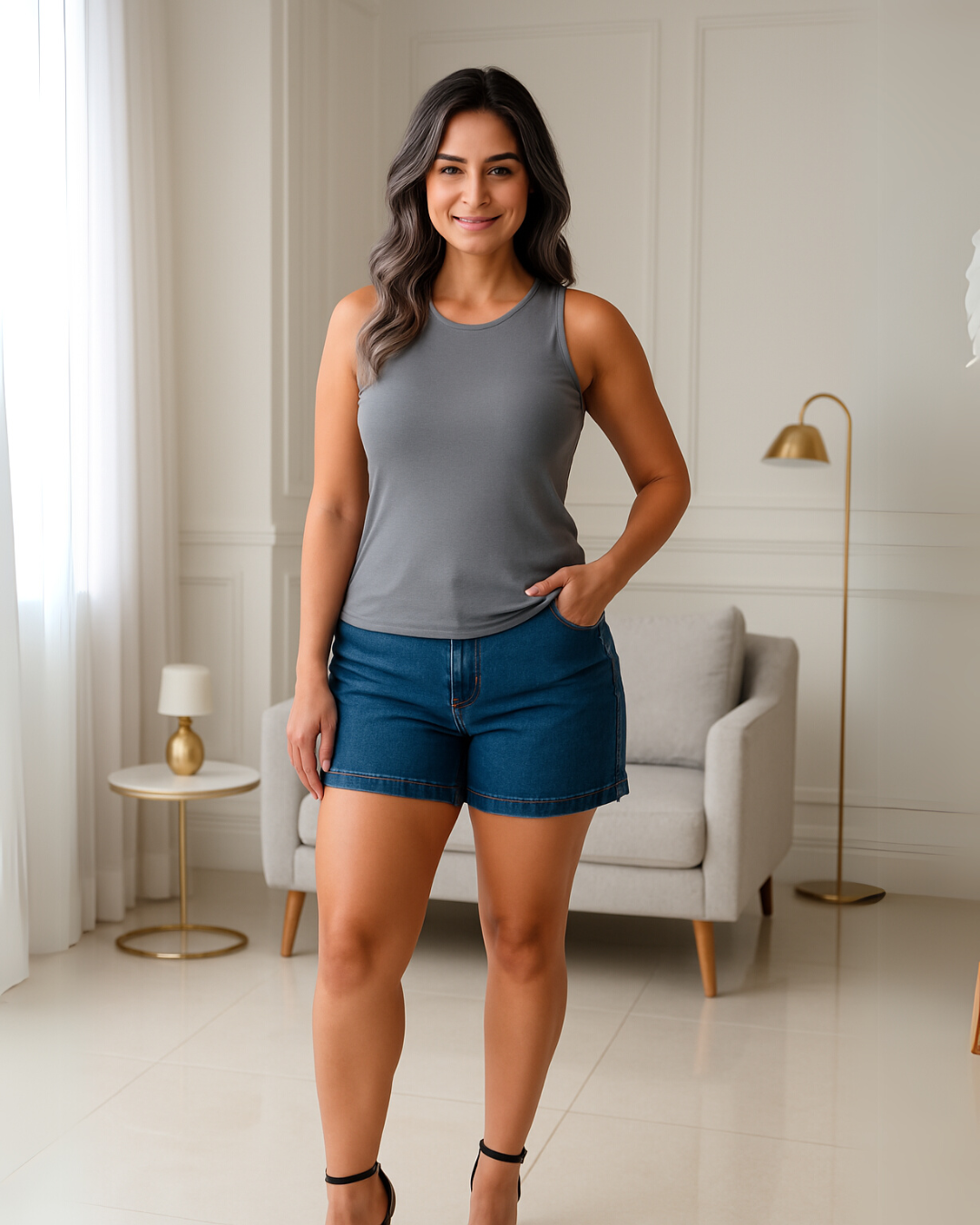 Clássica, versátil e indispensável, a regata cinza sem mangas é aquela peça coringa que combina com qualquer estilo! Com modelagem justa e um decote redondo atemporal, ela valoriza a silhueta e proporciona um toque de sofisticação ao look. Feita em tecido macio e elástico, garante conforto e caimento impecável, perfeita para qualquer ocasião.